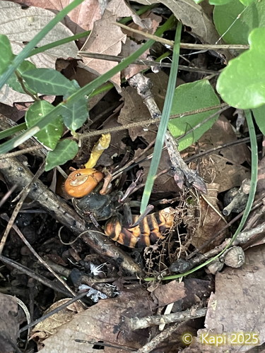 を探すために広葉樹林を徘徊していたら、足元にオオスズメバチの姿があってびっくりしました。