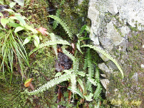 渓流沿いの岩壁にて。 富士羊歯という名前はあの富士山ではなく、愛知県の尾張富士のことだとか。