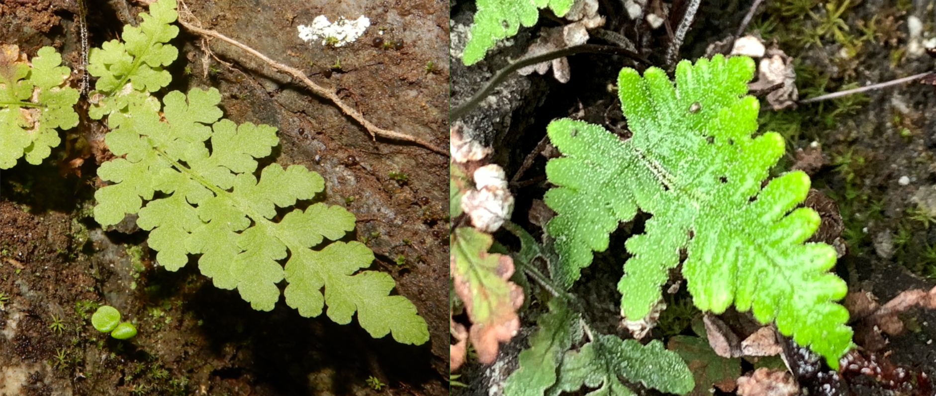 イワウラジロを探していると、ついこのシダを見つけてしまう・・・イワウラジロ(国内希少野生動植物種)に似ているけど、 こっちのほうが出始めの葉は黄緑色に近くて柔らかく、また葉の裏側も真っ白ではなかったりする。