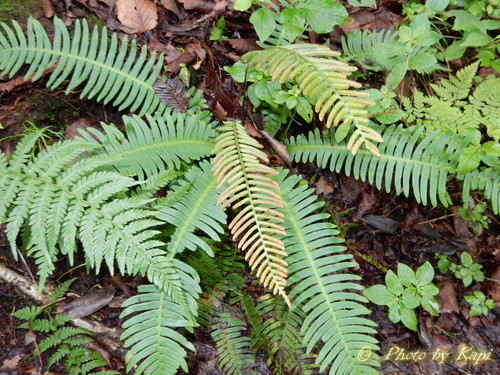 撮影は7月下旬、ほんのり色づいた胞子葉がポイント。